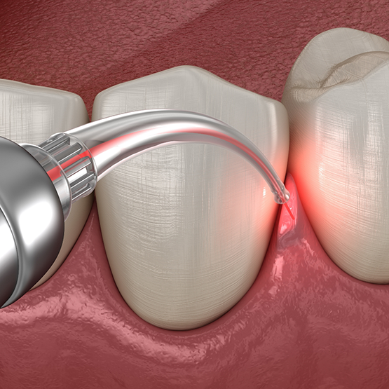 Using our Sol Diode Laser, we’re able to kill harmful, infection-causing bacteria with incredible accuracy. The laser emits a concentrated beam of light that can not only disinfect the pockets of the gums, but also vaporize any severely damaged gum tissue to prevent the infection from spreading. The laser also has a light touch, emitting practically no heat, sound, or vibration, creating a comfortable experience in the treatment chair.